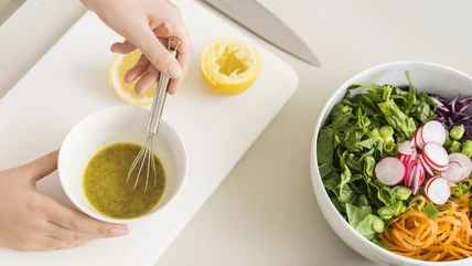 To make a vinaigrette salad dressing with tequila, combine oil (either olive, avocado, or canola can work) with the tequila of your choice. You don't need a lot — just a tablespoon or so of the spirit for every quarter cup of oil. Add a few spoons of a sweetener like honey or agave syrup to the mix, as well as lemon or lime juice, some apple cider or red wine vinegar, and salt and pepper to taste. To give the vinaigrette an even tangier flavor, add another source of citrus of your choice — limeade, orange juice, or even lemonade. You can further customize the dressing to your taste by adding some hot sauce, swapping the honey or agave with brown sugar, or whisking in a dash of spicy, Dijon, or honey mustard.