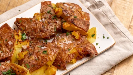 3-Ingredient Air-Fried Garlic Smashed Potatoes Recipe