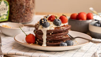 If you're looking to add more protein-rich ingredients to your meals without sacrificing indulgence, this chocolate pancake recipe is the best of both worlds.