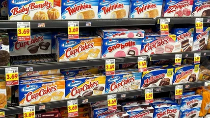 While walking down the snack aisle at the grocery store, you're bound to encounter towering shelves stacked with snack cakes and other dessert products, many of which are manufactured by the same recognizable brands. It's impossible to avoid the boxes upon boxes of Hostess' world-famous Twinkies or Little Debbie's beloved Swiss Rolls. These single-serve cakes have become popular snacks over the years, whether you're looking for a sweet bite after dinner or a small treat to pack in your kiddo's lunchbox.