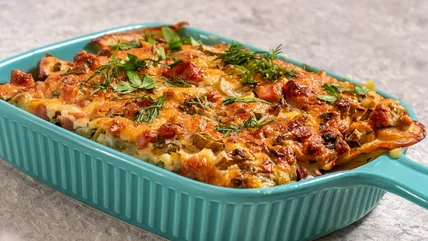 As for toppings, you can treat the casserole like a baked potato with a spoonful of sour cream, some diced green onion, and extra bacon bits as traditional options. You can also get creative with additions such as grilled chicken, pulled pork, pickled jalapeños, or baked beans. The time you save by swapping in that bag of frozen hash brown potatoes gives you more opportunity to prepare a variety of toppings.