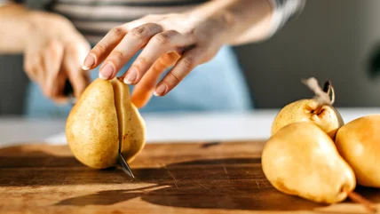 First, it helps to understand why exactly fruit slices turn brown. When you cut the pear, oxygen gets into its plant tissue. This causes a chemical reaction between the fruit's enzymes and proteins or amino acids, and the brown color is a byproduct of this. Sugar and the citric acid from the juice of citrus fruits are both effective in slowing the entire process, so both are useful in soaks to keep pear slices from browning. For a foolproof approach, soak your cut pears in cold lemon water.