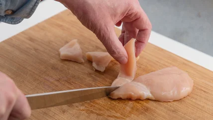 Nevertheless, old wisdom is still relevant here: cutting against the grain is still preferred in most cases, thick or thin, as it'll tend to give you the tenderest chicken. But when you're in a hurry and don't have time to identify the grain direction? No worries — just slice it thin and you'll still get results!