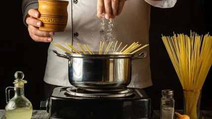 As for what type of salt to use, that cooking category provides you with a little more leeway. Iodized salt won't always be the best choice, since it can make pasta taste slightly metallic; however, if you have a zesty sauce and no other options, it'll do the trick. Sea salt or table salt also work. But, kosher salt's clean, straightforward taste will always be a stellar choice, especially since it'll allow bolder finishing salts to shine once the noodles are done cooking.