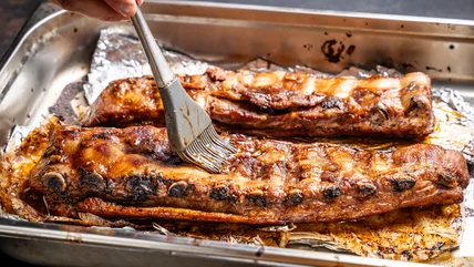 "During the first phase of the cook, leave them unwrapped to pick up some smoke flavor," she says. "Then, wrap them with some butter and syrup to braise them." Another option is to add vinegar or some apple juice as a cooking liquid when wrapping or to toss in some barbecue sauce toward the end of cooking. Beer works too — it's really all about flavor preference. Either way, wrapping your ribs will enhance the flavor of your barbecue. "[It] helps the meat cook faster and keeps it juicy," Vanover adds. It comes in handy when reheating your barbecue ribs as well.