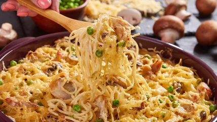 You can't go wrong with a creamy one-pot pasta, especially one that helps you put leftover roasted meat to good use. Traditionally made with spaghetti or egg noodles tossed in a silky sauce of cream, cheese, sherry, and mushrooms, turkey Tetrazzini gained popularity in the early 1900s, and it became a post-Thanksgiving favorite for many American families. It remained a staple well into the '60s and '70s, when canned soup was often used as a shortcut for creating the creamy sauce.