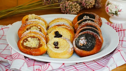 You'll find both sweet and savory options, like jalapeño-cheddar sausage or cherry cream cheese. Most kolaches are between four and six bucks, and they sell out quickly, especially on weekends, and once they sell out, that's it for the day.