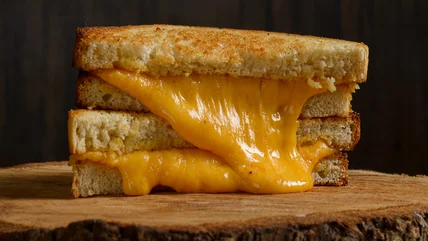 You can bake a grilled cheese in the oven using the same assembly you would use for frying. Butter the bread and place it face down on the sheet pan, cover it with cheese, and top it with another buttered slice. Cook for five minutes in a 400-degree Fahrenheit oven and then flip it over for another five. You're going to get wall-to-wall crispy, toasted bread with melty cheese inside.