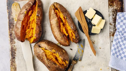 Sweet potatoes don't need much help in tasting wonderful, but double-roasting gives them a yummy glow-up, helping to develop crispy, candied edges and an interior that turns super soft and custardy. The technique sounds fancy, but it's really just strategic sequencing. You roast the potato once until completely tender, let it cool, then roast it again at a higher heat — easy peasy.