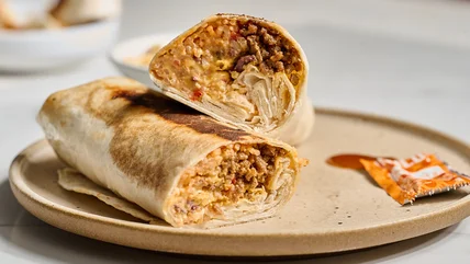 - If desired, add the burrito to a large skillet to toast the exterior, and cook for about 2 minutes, flipping once. Serve warm.