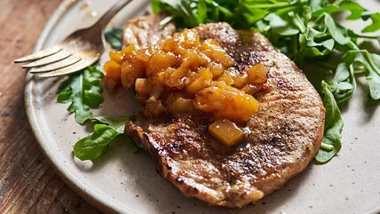 Packed with juiciness and natural sweetness, peaches are an ideal pairing for pork. When crafting this fruity chutney, we enhance the fresh peaches with a mouth-watering dose of tangy warmth, using apple cider vinegar and a medley of aromatics. This sticky mixture shines when spooned over pan-seared pork chops, bringing plenty of jammy deliciousness to balance the rich, savory meat. To add a pop of color and freshness to your plate, try serving the meat and chutney with a handful of peppery arugula.