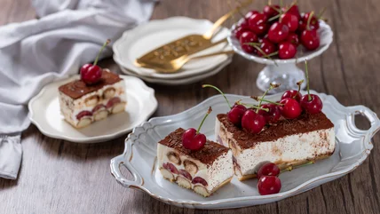 The Italian panettone results in a unique tiramisu that's great for holidays, thanks to its Christmas association. However, it also brings new ingredients into the mix – like candied orange peel, candied cherries, dried currants, and golden raisins — which provide a whole new sensory experience. You'll see the fruit pieces in the dessert, but they'll also bring a slightly chewy texture and added sweetness to each bite.