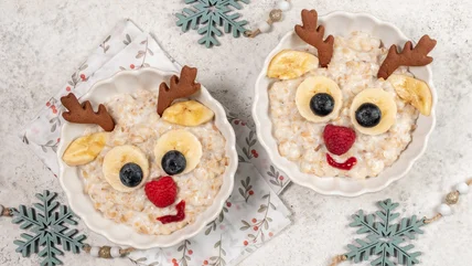 Whether hot or cold, baked in the oven or prepared as an overnight treat for breakfast, oatmeal is a wholesome meal. Dressing it up for the holidays with eggnog is a festive and fun way to add more spice and depth to your cup or bowl. For a basic batch of overnight oats, use a combination of rolled oats, eggnog, Greek yogurt, vanilla extract, and chia seeds or flaxseed meal. Add extra freshly ground nutmeg and your preferred sweetener before mixing and refrigerating. Maple syrup will give your breakfast an even more holiday-inspired taste.