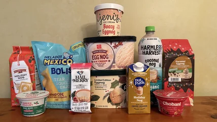 'Tis the season for peppermint mochas, gingerbread hot chocolates, and, of course, tall glasses of eggnog. This holiday beverage can be as divisive as candy corn; some folks can't get enough of it, while others gag at the mere thought of egg-infused milk. If you can get past the essence of this beverage, though, you'll fall head over heels for its rich spices and occasional kick of alcohol. As a dedicated fan, I recently found myself allured by all the eggnog-flavored products available at grocery stores these days, so I decided to taste and rank a large handful of them.