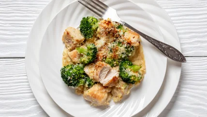 The ingredients may differ for chicken divan, but the result is nearly always a comforting, wholesome, and warming dish. For that reason, many believe it is incredibly underrated in the modern day and are hoping for a resurgence in its popularity. Many put it in the same category as other vintage classics like chicken à la king and Salisbury steak in terms of nostalgia. Again, if you're looking to bring it back to the table, chicken divan can be modernized in many different ways. Some like to add mushrooms and multigrain breadcrumbs, for example, while others lose the chicken entirely and swap in jackfruit instead.