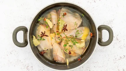 To give your meat brines a sure-fire zing, simply grate the citrus peels and combine with salt, sugar, and aromatics in a dry brine before applying it to a turkey or cut of beef. If you're making a wet brine for a super juicy whole chicken, toss in the peels from a couple of grapefruits into a mixture of water, salt, sugar, and spices like cloves, nutmeg, and peppercorns before simmering it to infuse the citrus and dissolve the sugar before cooling it. Then brine the meat for about 12 to 24 hours, remove it from the liquid, pat it dry, and get roasting.