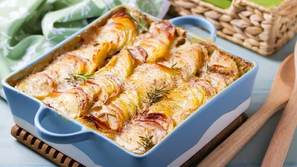 Instead of starting from scratch, canned sliced potatoes let you begin 15 minutes ahead with a pop of the can. No more knife work that feels like it takes forever, the dish is already halfway assembled the moment you think about making it. All that's left to do is drain the liquid, pat the slices dry, and stack them into the baking dish as you usually would. And just like that, a dish typically saved for special occasions becomes an easy weeknight treat for whenever the mood demands it.