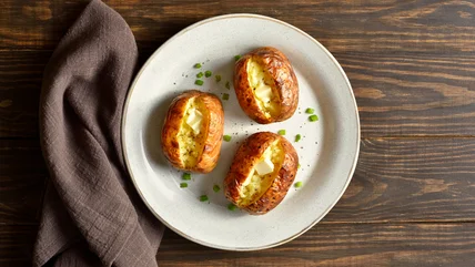 Whether on their own or on the side of an entree, baked potatoes are a perfectly filling and fulfilling food. Packed with nutrients such as fiber, potassium, and vitamin B6, they are endlessly customizable. They can even accommodate a wide range of traditional and unexpected toppings to level up your side dish into a full meal. For instance, topping your next baked potato with a can of chicken pot pie soup will bring two comforting foods into one delightful dish.