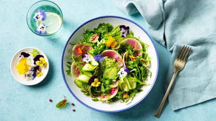 If you've never had honeycomb, you might be wondering what, exactly, it tastes like, and why it's worth adding to a salad. According to Olivia, "Honeycomb adds a clean, floral sweetness that's more complex than a traditional drizzle of honey." Along with being more complex, honeycomb is also healthier than processed honey because it's raw. Far more nutrients remain in raw honey, so the health benefits are plentiful, making it an optimal salad topping.