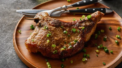 To cook those perfectly-crusted pork chops, chef John Politte recommends searing then baking the chops — what he refers to as the "pan-to-oven method." To start, Politte tells us to preheat the oven to 400 degrees Fahrenheit, and then to "heat a heavy skillet over medium-high heat and add a small amount of oil." Once the skillet is hot, sear the chops until you get a nice golden brown crust, about two minutes on each side. From there, "transfer the skillet to the oven and bake for 6–10 minutes, depending on thickness, until the internal temperature reaches 145 degrees Fahrenheit," Politte directs. But be sure to let the crusted chops rest for about five minutes before slicing so they stay juicy inside, as resting allows the internal juices to redistribute. Politte says that "this technique ensures a crisp, flavorful crust while gently finishing the pork chop without overcooking, resulting in tender and juicy meat."