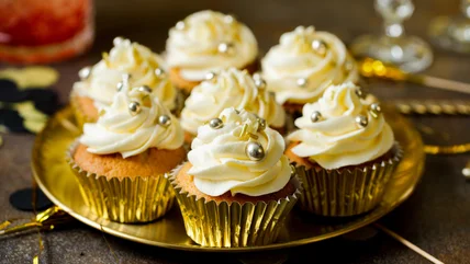 One of the quickest ways to transform a plain cupcake into an elegant creation is to bless it with a metallic finish. Go all-in with edible metallic spray and entirely transform the frosting, or spray on just a little bit to add the necessary pizzazz. Even without the edible paint, silver and gold sprinkles can go a long way in bringing that signature metallic shine.