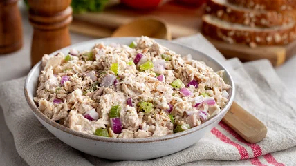 There are many creative ways to use fresh dill, and adding it to your tuna salad works to balance the richness of the fish while elevating the overall flavor and preventing an overly fishy taste. Combining dill with lemon juice amps up the flavor even further, giving your tuna salad a zesty, citrusy twist. Rather than mixing all of your ingredients together at the same time, though, first create a flavorful dill sauce with only a few key ingredients: fresh dill, mayonnaise, lemon juice, and key spices and seasonings such as salt, pepper, and onion and garlic powder, depending on your tastes.