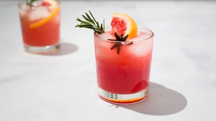 - Garnish with the reserved star anise pod, the reserved orange slice, and the second sprig of rosemary. Cut the orange slice in half if it doesn't fit in the glass. Serve immediately.