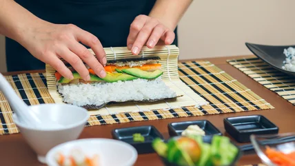 Practicing sushi-making at home
