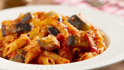 The hype is high, and it is not hard to understand when you begin to read the brand's description of the product. Based on the Sicilian dish pasta alla norma, each package contains two small trays of rigatoni noodles and eggplant tossed in tomato sauce and béchamel with mozzarella, provolone, and unspecified hard grating cheeses — a category that includes varieties like Parmesan and Pecorino. It may not be exactly a pasta alla norma, in which it would be more traditional to find ricotta salata. Similar to the ricotta versus béchamel debate in lasagna, both sides are winners in the end.
