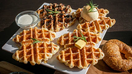 If you're using pre-made croissant dough, you can cut the store-bought ingredient to the shape of your choosing. Circular discs fit nicely in waffle makers and are ideal portions to hold deli cheeses and meats together. Upgrade classic grilled cheese sandwiches or pack the buttery base with grilled seitan or tofu. Your croffle sandwich may become the envy of your colleagues, and your croffle lunch will bring bites of weekend brunch right to your desk.