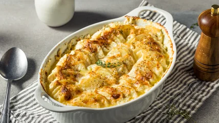 So, what does this have to do with scallops? There are two schools of thought when it comes to the etymology of "scalloped" as a culinary term. The most persistent is that it evolved from a popular way to cook seafood, in which scallops, oysters, or minced fish were baked in a creamy sauce and served in actual scallop shells for elegant presentation. The second theory is that it comes from the French word "escalope" or old English collops, which meant a thin slice of something, usually meat. While the potatoes in scalloped potatoes are certainly thinly sliced, they're not crumbed and fried as a modern escalope-style recipe would be.