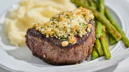 With an herby, melty, crunchy panko and blue cheese crust, these perfectly-cooked filet mignons are the epitome of sophisticated deliciousness.