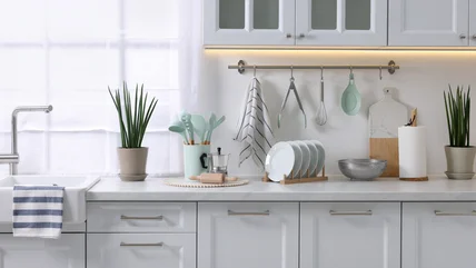 Take this set of three decorative ceramic plant pots. All of the pots are blue and white, but with varying motifs. They bring a Victorian-style English country-home elegance and whimsy to any kitchen, while being spacious, sturdy, and ready to organize. This set of round ceramic plant pots in multiple sizes, meanwhile, has an arty modern look for more contemporary kitchens. This pair of pink and white striped, scalloped planters is too cute for pastel kitchens, while this trio of gorgeously glazed, fiery-hued pots is an instant color pop.