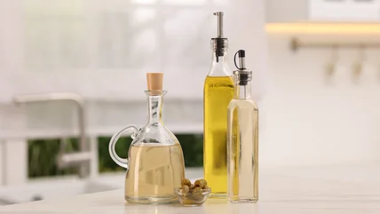 Keep in mind that olive oil actually thrives for longer periods of time in darkly tinted glass bottles, because too much exposure to light can break the oil's antioxidants and good aroma compounds down, leading to poor-tasting and even unsafe results. When using a Dollar Tree glass bottle, do so for oil you know you'll be using within a shorter amount of time, and keep bottles in cooler, less light-exposed areas of your kitchen. Wrap them in pretty fabrics for a decorative touch that also blocks light. You can even swap the cork for something more airtight, like a wine bottle stopper — another decor opportunity.