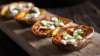 For bison burgers, sweet and savory bacon jam stuffed potato skins make the perfect buns. Along with the jam, stuff the spud's skins with blue cheese, chives, and minced jalapeños. The buns carry plenty of flavor for the burgers, but if you're looking for a heftier meal, top off your meal with grilled mushrooms and arugula. Alternatively, if you like the sweeter side of burgers, you can always turn sweet potatoes into burger buns too. Stuffed with bacon, red peppers, and cheddar, the slightly caramelized loaded sweet potato skins are the icing on top of blended beef and white bean BBQ burgers.