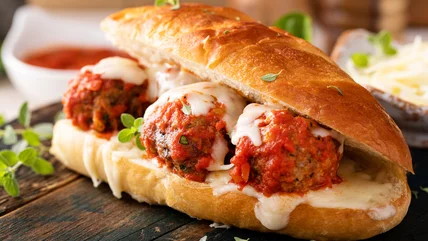 Everyone seems to love meatballs. Spaghetti and meatballs has been an American classic for decades, and meatballs are on the appetizer menu at most Italian restaurants. And, of course, meatballs are also stuffed between bread to create the meatball sandwich. That bread is usually a crusty Italian roll, the same type used for cold Italian-American sandwiches. The meatball sandwich is served warm with a tomato sauce and cheese, usually mozzarella, which is often quickly melted underneath a broiler before serving. It might bear the name "meatball sub," "meatball Parmesan," or even "meatball Parmigiana" to denote some additional fanciness.