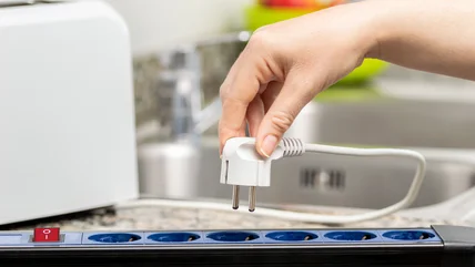 The outlet you choose isn't the only safety precaution to take with your kitchen appliances. For instance, small appliances should be unplugged if a storm is on the way in order to prevent dangerous power surges and damage to the appliances. Before using an extension cord for kitchen appliances, read your manuals for instructions on what type is safe to use – or if you should avoid using one altogether. You should also regularly inspect extension cords to make sure they aren't cracked, frayed, or otherwise damaged. And never run an extension cord underneath furniture or appliances, as this could cause overheating or fire.