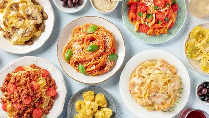 To enjoy these sauces, consider chicken Alfredo tortellini, which you can recreate at home with the help of store-bought stuffed pastas. Walmart's Marketside fresh pastas offer tortellini and other cheese and herb stuffed pastas to pair with Olive Garden's Alfredo sauce. Olive Garden's meat sauce would be a great addition to homemade lasagna or as a swap for bolognese to serve over spaghetti or pappardelle. The marinara sauce can streamline your next batch of chicken or eggplant parmesan. While our absolute favorite sauce, the mushroom cream sauce isn't available to order by the pint, you can incorporate that same earthy savoriness into the Alfredo sauce by adding meaty, butter-sautéed mushrooms to serve over your favorite type of pasta.
