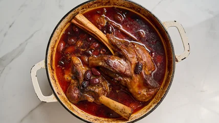 There's something special about slow-roasted, braised meat that you can taste in every bite. A method reserved for cuts of meat that are too lean to sear, braising meat at low heat infuses it with flavor and breaks down the tough connective tissue, leading to a meltingly tender meat and a thick, rich broth. It's a texture and flavor that is only possible to achieve by working slowly, with low heat and long cook times that lead to impressive results. It's a method that works perfectly for affordable cuts of meat like lamb shanks, which would otherwise be too tough to eat on their own. It's also a method that invites bold and unique flavors, which the long cook time transforms into a harmonious sauce.
