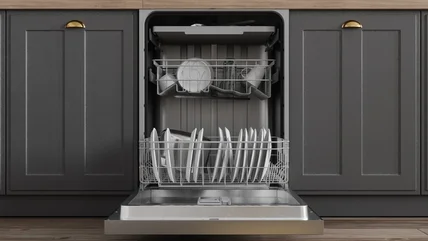 The best way to load cutting boards, baking sheets, platters, baking dishes, and other tall items is to place them horizontally along the sides or back of the lower rack. This provides clearance for upper and lower spray arms and keeps the dish detergent dispenser clear. After loading, check to see if the spray arms still rotate 360 degrees by spinning them gently with your hand. If you have a dishwasher with adjustable racks, you can also raise the upper rack to accommodate taller items. If an item is still too tall to fit properly, angle it downwards slightly – just make sure it isn't blocking any other dishes.