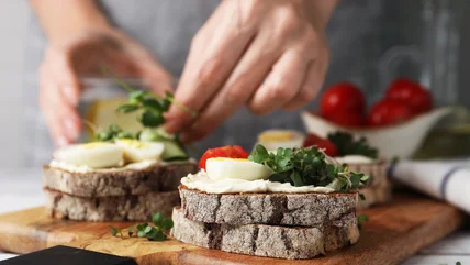 Think of incorporating a creamy or oil-based ingredient, like extra virgin olive oil, mayo, or Greek yogurt. Add something crunchy like onions or celery for textural contrast, and season according to the flavor profile you're going for. For example, try mashing chickpeas and adding finely chopped red onions, parsley, lemon juice, olive oil, and seasonings, then spreading it thickly between two slices of bread. Alternatively, you might choose white beans mashed with avocado, dill, lemon, and chili flakes for a fun and spicy twist. Opting for black beans? Sour cream, cilantro, red onions, and cumin give your sandwich a Mexican flair.