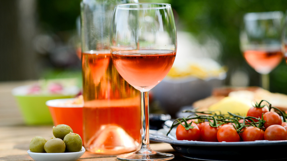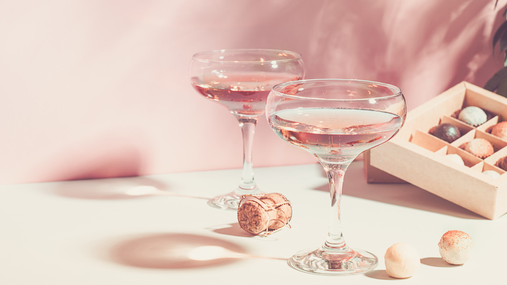 There's one exception to the rule of skin-contact rosés, and that's Champagne. According to Wine Enthusiast, two methods are allowed for making pink Champagne. First, there's the saignée or "bled" method, which is basically what we described above. Then, there's the assemblage or "assembly" method, where a certain amount of Pinot Noir or Pinot Meunier wine is added to Chardonnay. This method is far more common in Champagne production and usually results in a pink blend that tends to be less intense in flavor than the saignée wines.