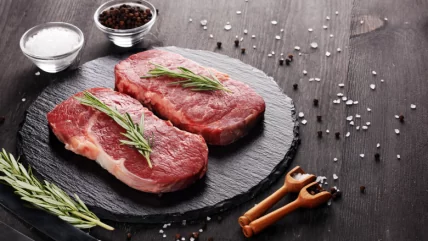 Simply heat butter in a skillet. While that's warming up, season your eggs in a small bowl with salt and pepper. Start cooking the egg. As they're cooking, put your steak in a microwave-safe dish, pour the steak juice over the top, and cover with plastic wrap or another microwave-safe cover. Set the microwave to medium heat, then heat for 90 to 120 seconds, flipping the steak every 30 seconds. The steak juice will help bring moisture back to the steak to make it juicy, while the cover will prevent the juices from evaporating as it is re-heated. When the steak is nice and hot and your eggs are cooked, plate them together and enjoy alongside fresh sliced tomatoes or avocado or with a chunk of crusty bread.