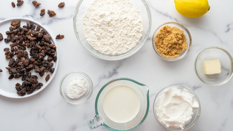 With just a couple tweaks, the ingredients list for this classic British recipe goes from tricky to simple. To make Capozzoli's recipe for spotted dick, you'll need butter, flour, baking powder, vegetable shortening, light brown sugar, currants or raisins, lemon zest, and whole milk. Of course, if you can find it and would rather use the traditional suet in place of the shortening, you're welcome to do that. The method would remain the same.
