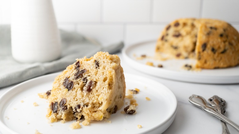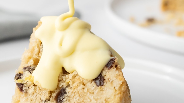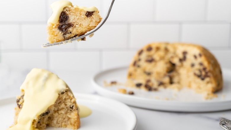 If you're not into raisins or currants, you can always swap them out for other dried fruits or even nuts or chocolate chips, but of course, that would deviate from a traditional spotted dick. "I wouldn't recommend adding anything that changes the moisture levels such as fresh fruit," Capozzoli offers as a word of caution, but then adds, "Although, if you're looking to experiment, try soaking the raisins in a bit of rum before adding them into the mixture."