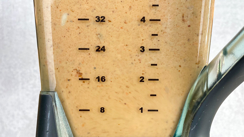 This recipe is amazingly easy. About five minutes of prep work and one to two minutes with a blender is all it takes to make a delicious sweet potato smoothie. Start off by dropping the frozen sweet potato, banana, Greek yogurt, almond butter, dates, vanilla extract, and almond milk into a blender. As MacLean says, "I chose almond milk to keep the recipe vegan and accessible for many different diets — however, you can swap out whatever you have on hand, and I am sure it would still be delicious!" Top off the ingredients with your spices: cinnamon, nutmeg, and cloves.