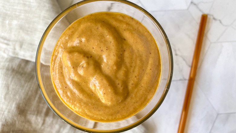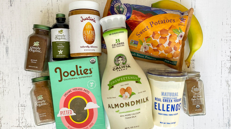 Given how quick and easy this sweet potato recipe is, it will probably take you longer to pick up the ingredients than to make it. Start in the fruit and vegetable aisles at your local store by picking one sweet potato, some dates, and a bunch of bananas (although you'll only need one for this recipe). Instead of cubing a fresh sweet potato, MacLean suggests "[purchasing] already-cubed and frozen sweet potato, however if one was using a fresh sweet potato, I would cube it, steam it, and then freeze it until ready for use." MacLean approximates half of a sweet potato would equal about a cup. For the dates, MacLean suggests Medjool dates as "they tend to be sweeter and add a wonderful caramel flavor."