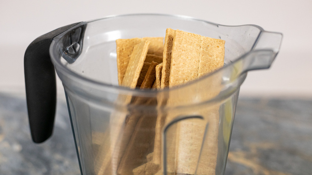 - Blitz the graham crackers, 2 tablespoons sugar, and melted butter in a blender or food processor to make crust.