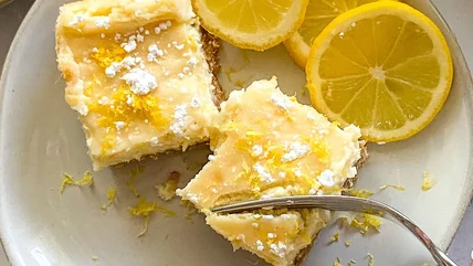 Recipe developer and wellness coach Miriam Hahn offers up an easy, fruity twist on cheesecake with this lemon cheesecake bars recipe.
