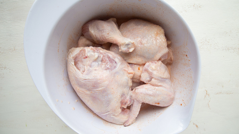 - Add the chicken pieces to the bowl, mixing to coat them with the marinade.